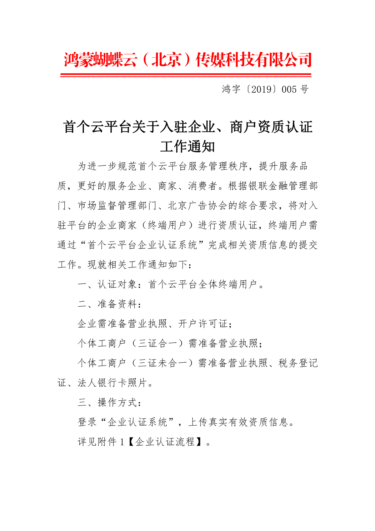 首个云平台关于入驻企业、商户资质认证工作通知
