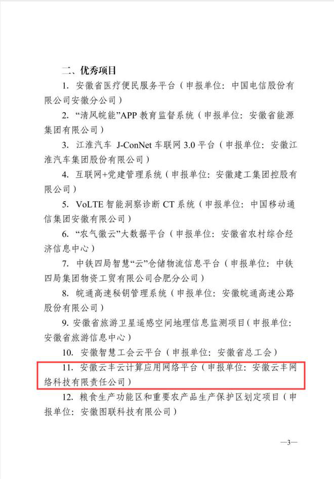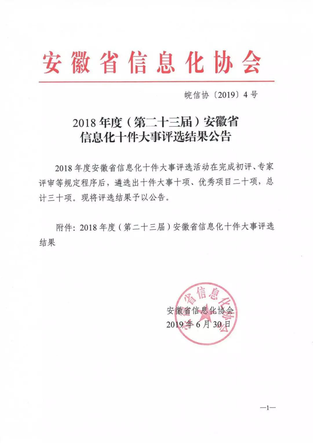 安徽省信息化十件大事评选结果公告